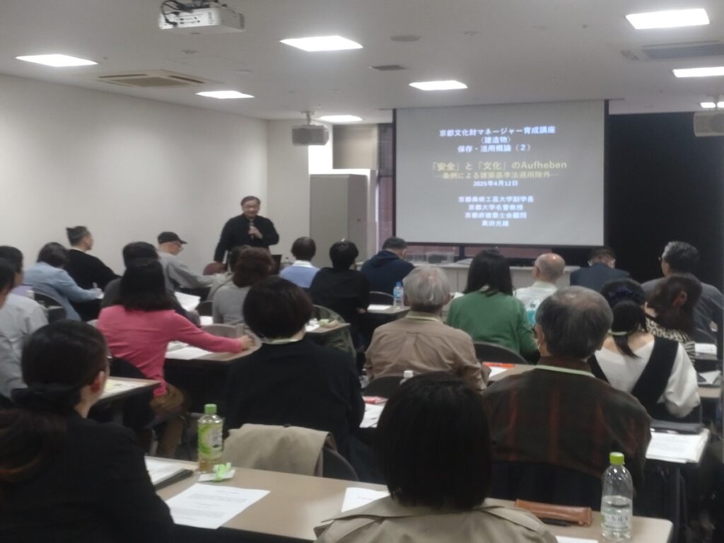 講座の内容は、京町家や寺社、近現代建築など歴史的建造物とその評価、庭園の様式、文化財関連法規、文化財行政、保存・活用とまちづくりの考え方、耐震補強、防災対策など多岐にわたります。それぞれ専門の方からの講義を受け、質疑応答の時間が設けられています。